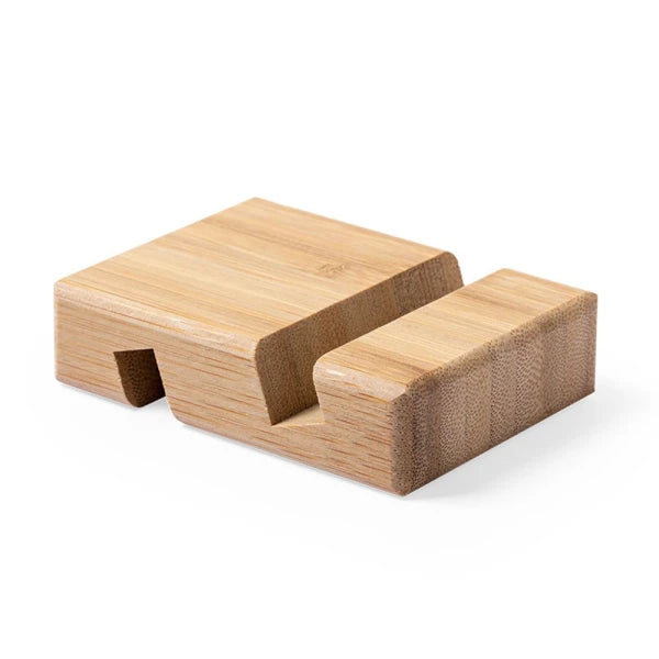 Base en bambu con doble raruna para ceular y tablet. De 8 x 6 x...