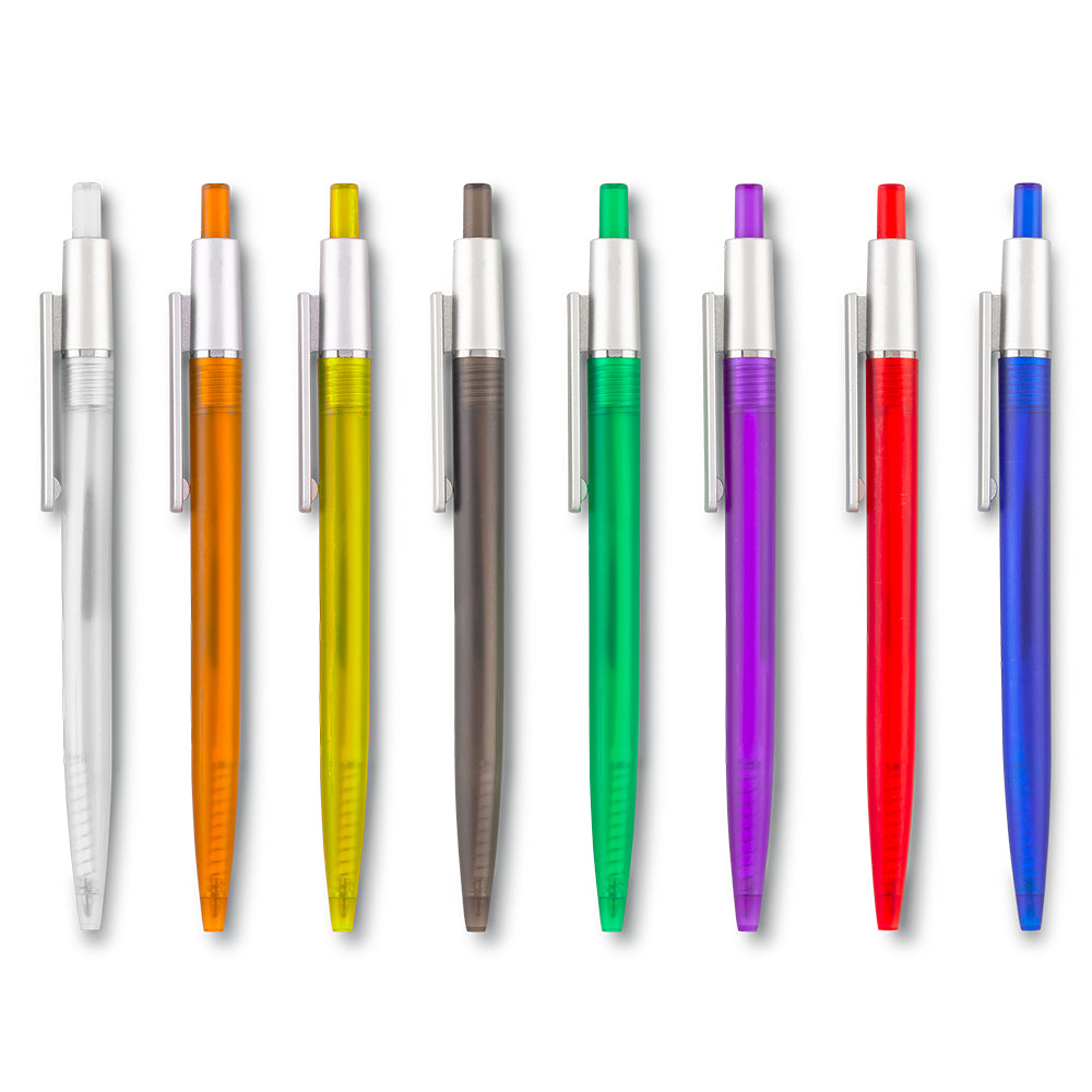 Bolígrafo plástico con mecanismo push.Medidas: 14.5 cm.Marca: 3.5 cm / Tampografía.