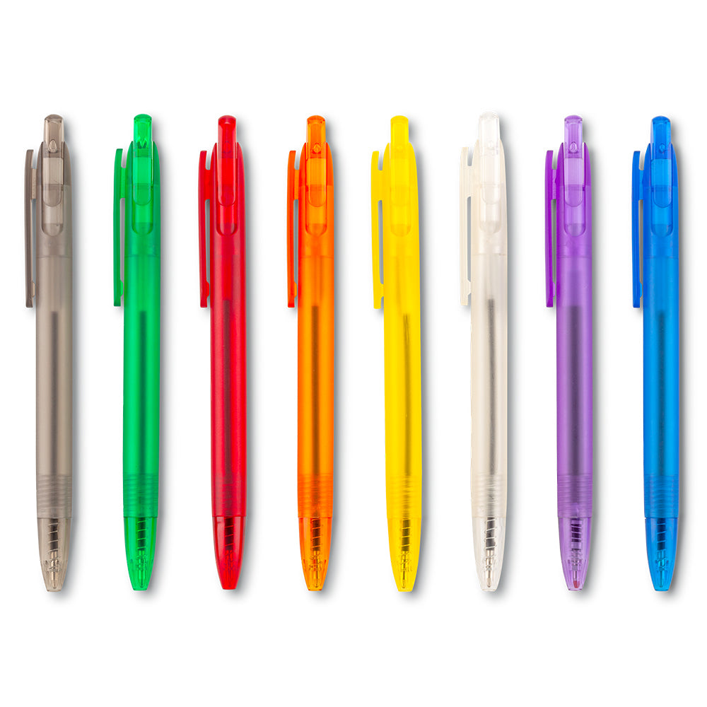Bolígrafo plástico con mecanismo push.Medidas: 14 cm.Marca: 3 cm / Tampografía.