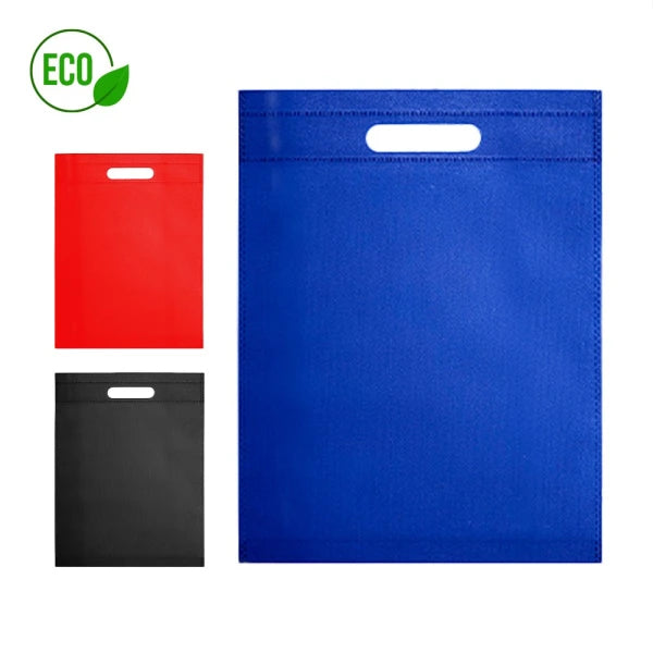 Bolsa ecológica termosellada, con manija troquelada. Útil para librerías, mercados, tiendas de comestibles, etc. MATERIAL: Kambrel...