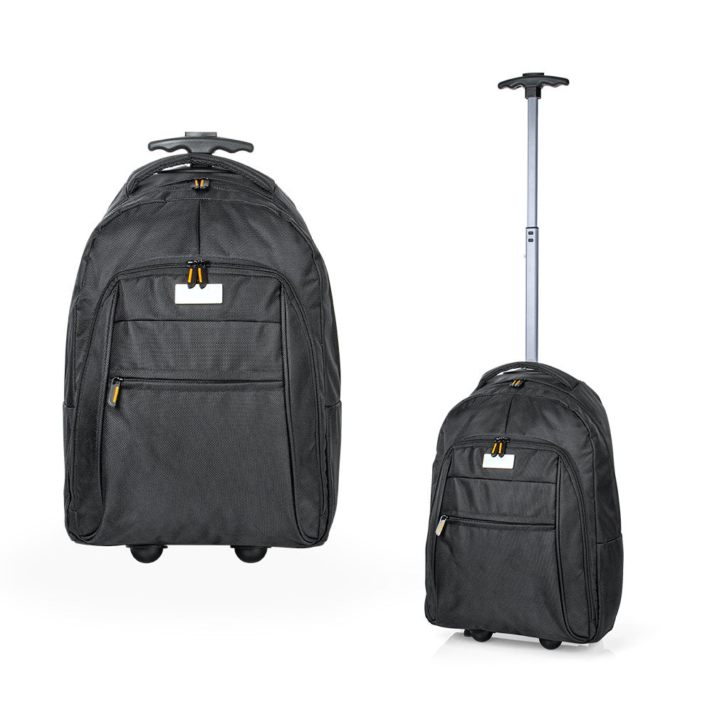 Morral para viaje con trolley. Cargaderas acolchadas ajustables y manija de mano. Bolsillo posterior con...