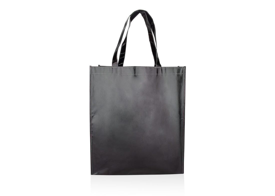 Bolsa tipo tote fabricada en material metalizado brillante. Su acabado reflectivo le da un aspecto...