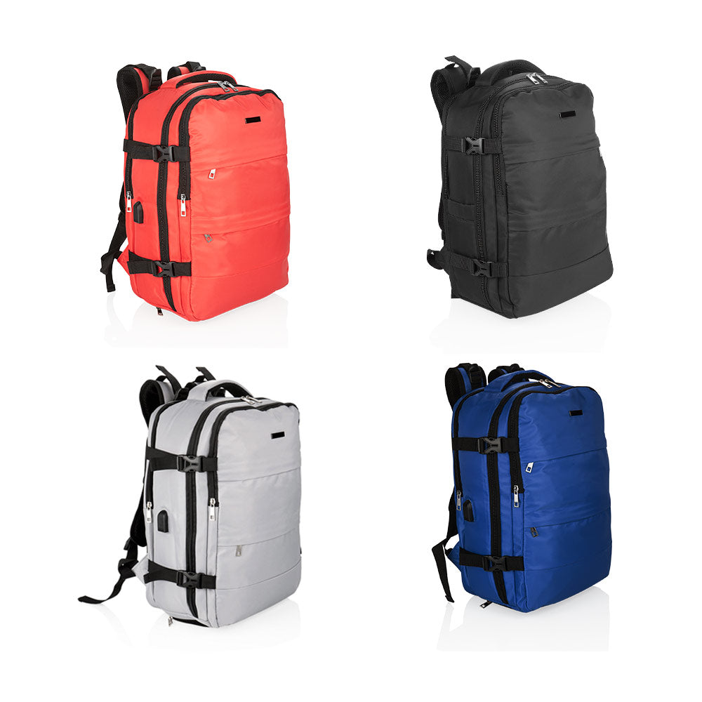 Descripción: Mochila con salida USB (se requiere conectar a bateria portatil) para cargar smartphone. Bolsa principal...