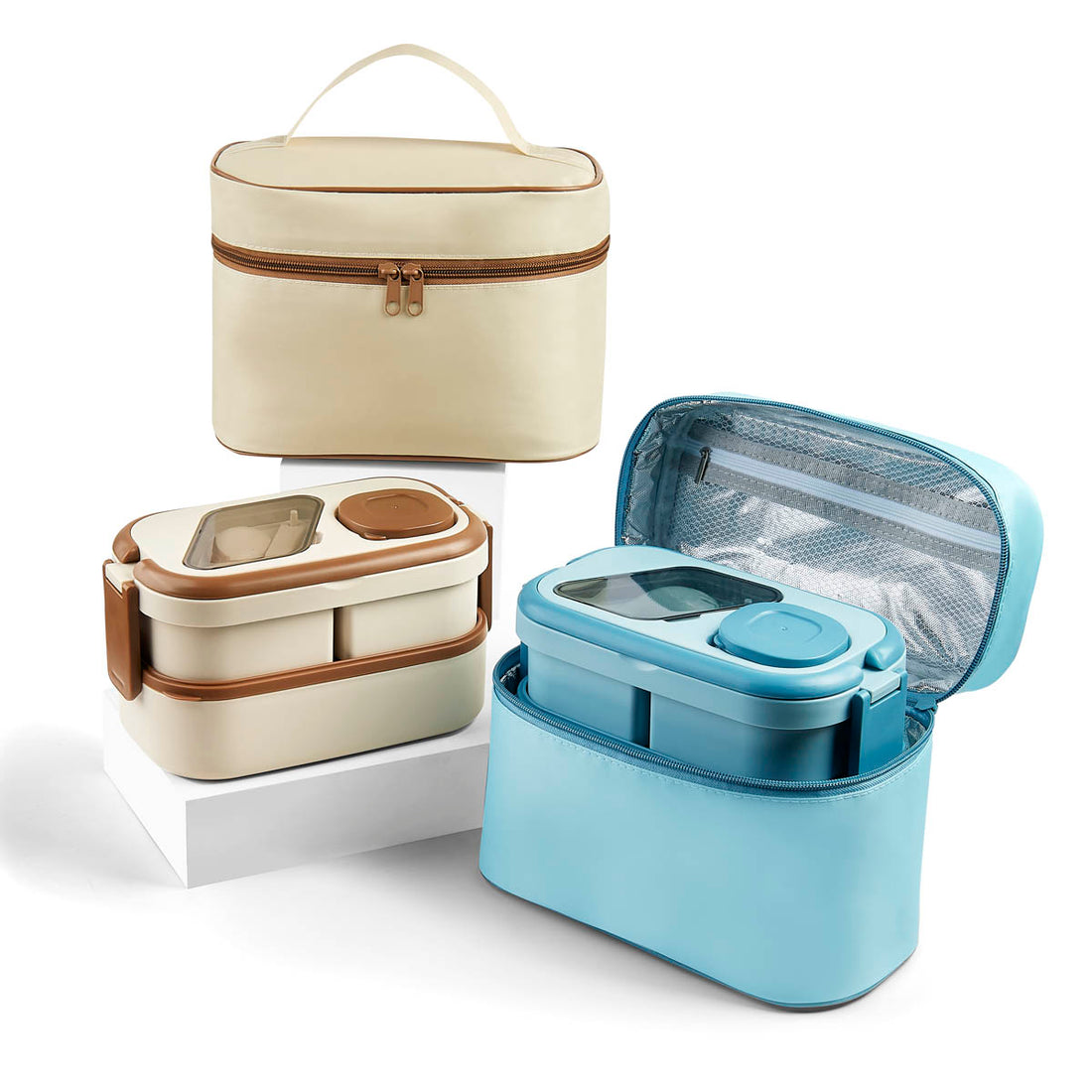 Lonchera con recubrimiento interno, diseño sofisticado, cierre de cremallera con doble deslizador y bolsillo pequeño...