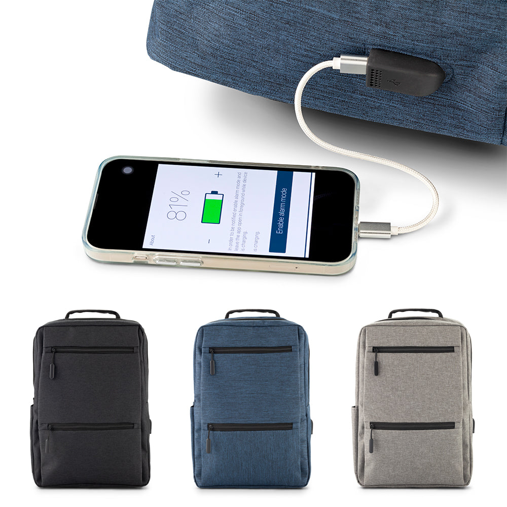 Morral backpack en poliéster. Apto para portátil de hasta 15". Tres bolsillos externos con cremallera....