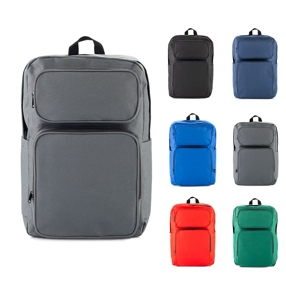 Morral backpack en poliéster. Apto para portátil de hasta 15". Cinco bolsillos externos con cremallera....