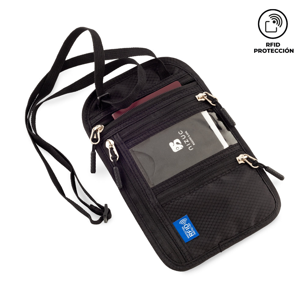 Portadocumentos para viaje en lona poliester, con 4 bosillos externos con cremallera y un bolsillo...