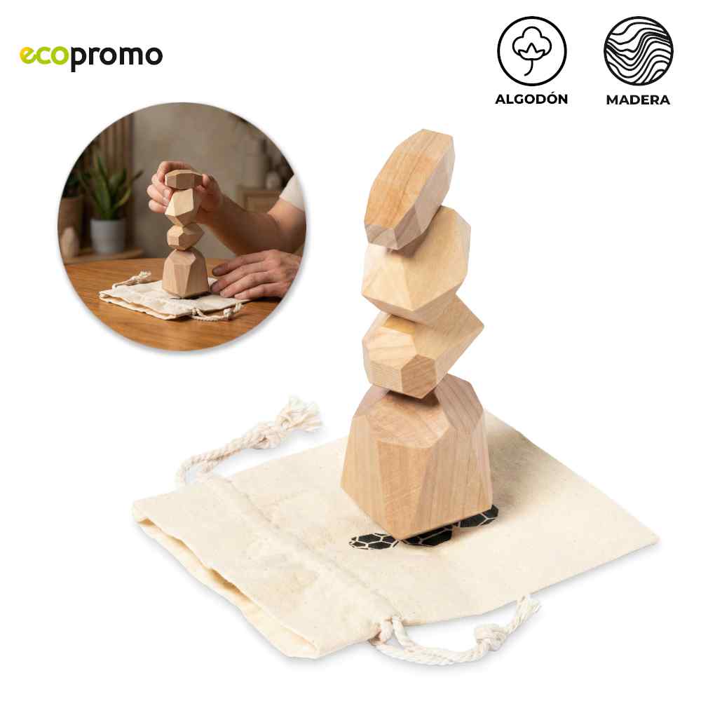 Juego de 4 piezas en madera natural, diseñado para desarrollar habilidades. Con bolsa en algodón.Medidas...