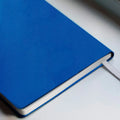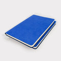 Agenda de tapas delgadas flexibles en cuerina sin cartón. Textura bicolor. De 100 hojas con rayas. Cinta separadora. De 14 x 21 cm.
