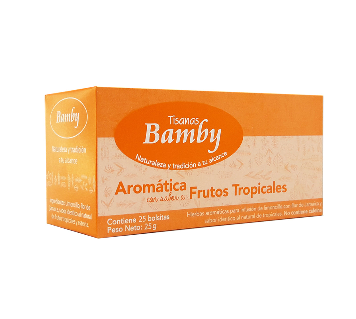 Aromática BAMBY de Frutos Tropicales es una infusión refrescante y vibrante que te captura con su sabor exótico. Cada caja contiene 20 sobres individuales, ofreciendo una bebida natural y llena de aromas y sabores. Se destaca por su sabor único y su capacidad para transportar al consumidor a un paraíso tropica