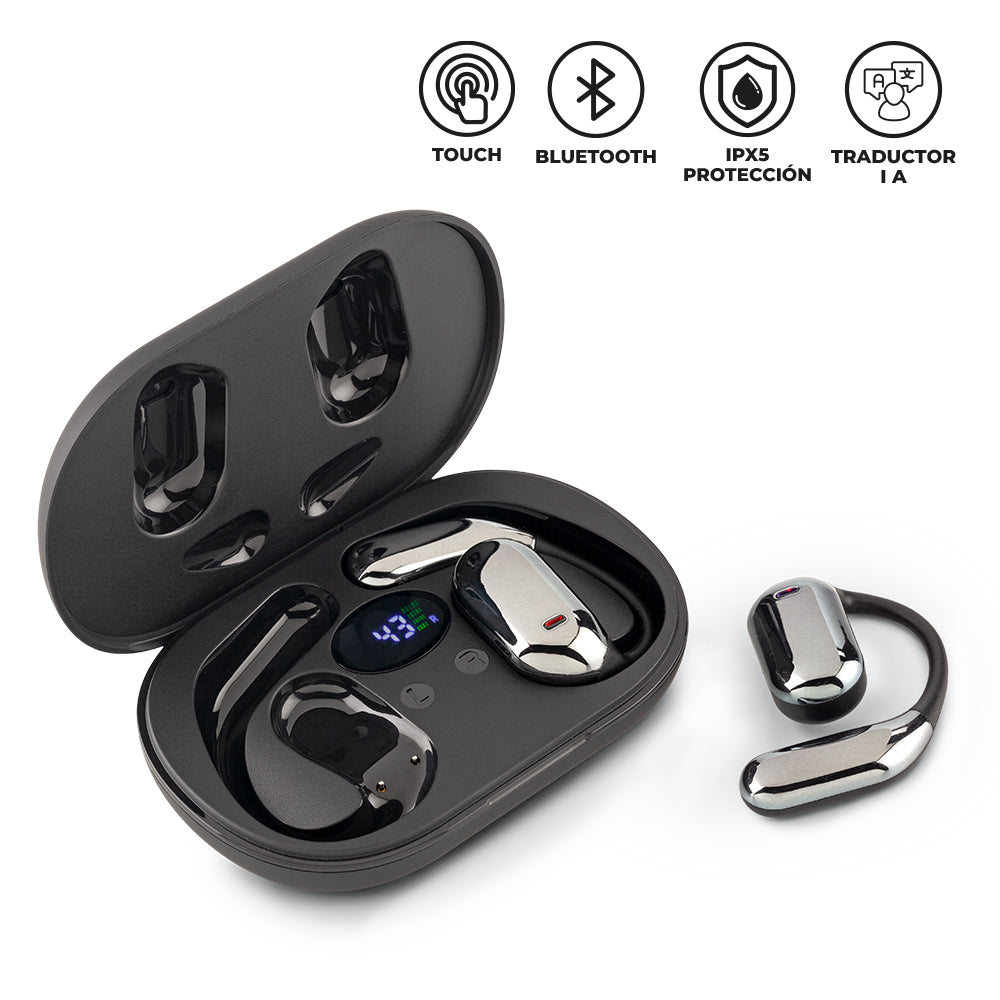 Audífonos Bluetooth plásticos con estuche portátil de recarga. Versión del bluetooth: 5.3. Capacidad de la batería: 300mAh. Mandos por touch.