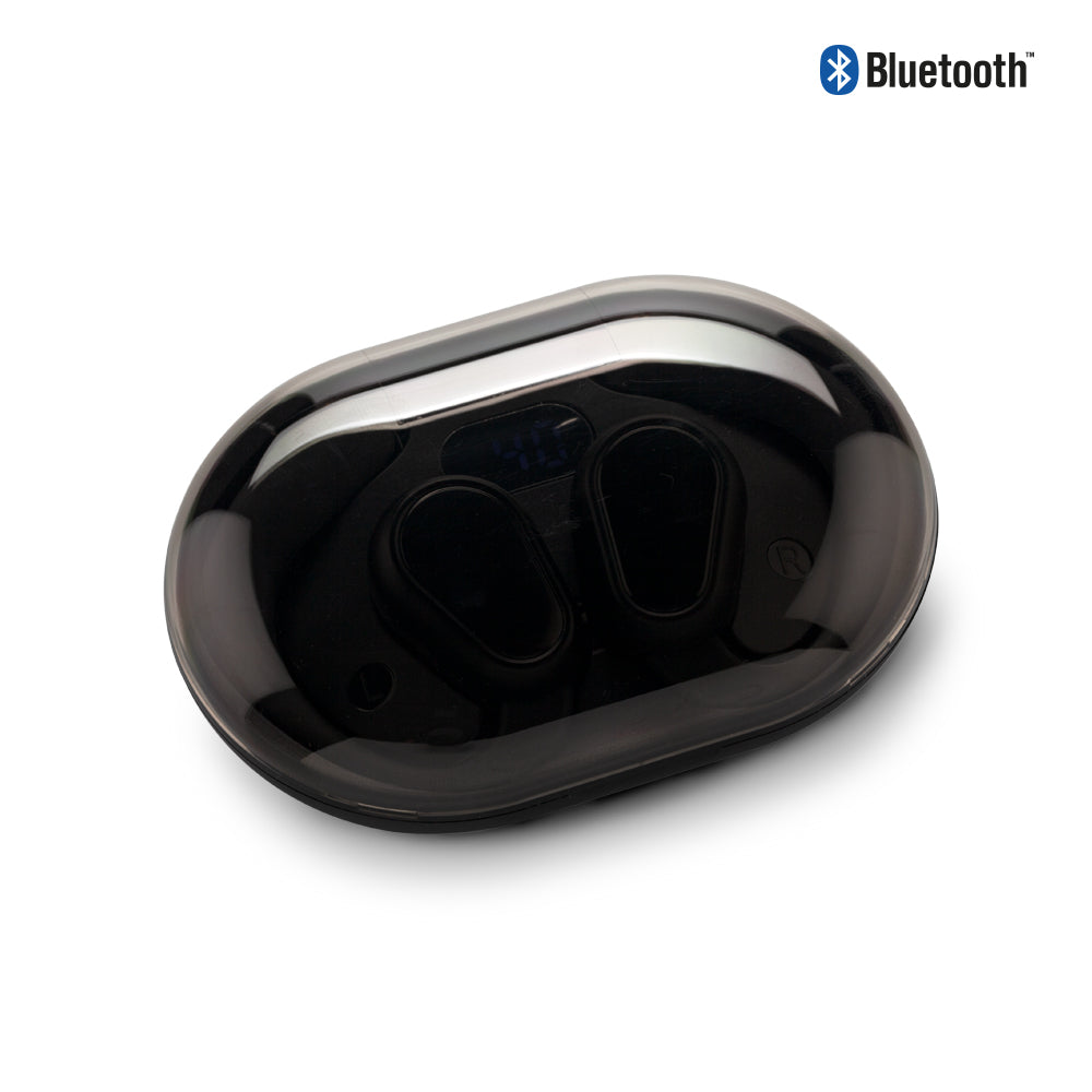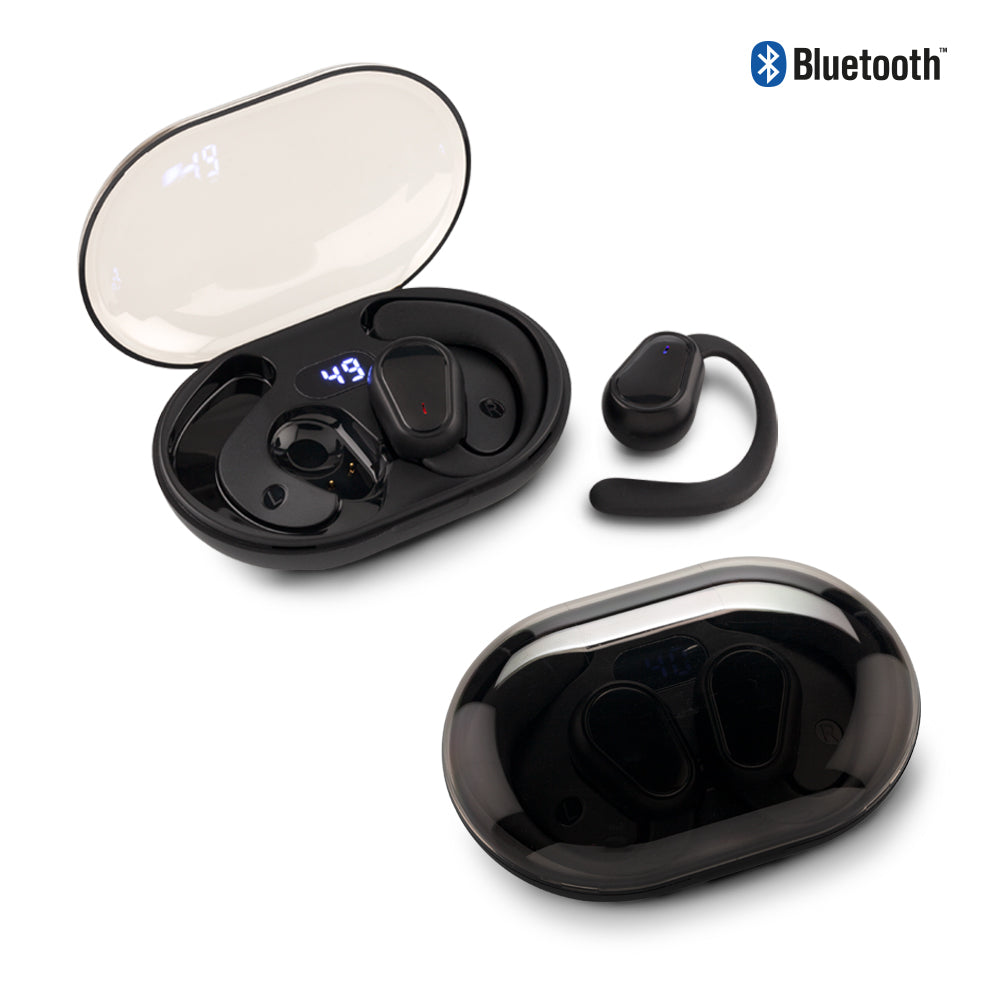 Audífonos Bluetooth de plástico de conducción ósea, que utilizan tecnología de conducción de las vibraciones del sonido, sin invasión intraauricular. Con estuche portátil y pantalla LCD de recarga de 500mAH que muestra el nivel de carga. Reducción de ruido 50dB. Tiempo de carga del estuche: 2 horas, tiempo de carga de los audífonos 1,5 horas. Tiempo de trabajo de estuche hasta 12 horas, y de los audífonos hasta 4 horas seguidas. Versión de Bluetooth: V5.2+EDR. Línea de transmisión: >10 M. Incluye cable Tipo C para carga. Empaque caja individual.