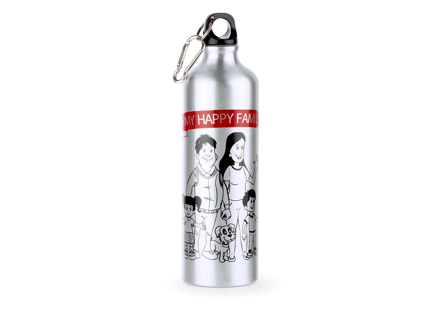Botella de aluminio con tapa de rosca y gancho carabinero metálico para fácil transporte. Libre de BPA y sustancias nocivas. No retiene ni transmite sabores. Recubrimiento exterior con pintura atóxica. Capacidad 800 ml / 28 Oz.