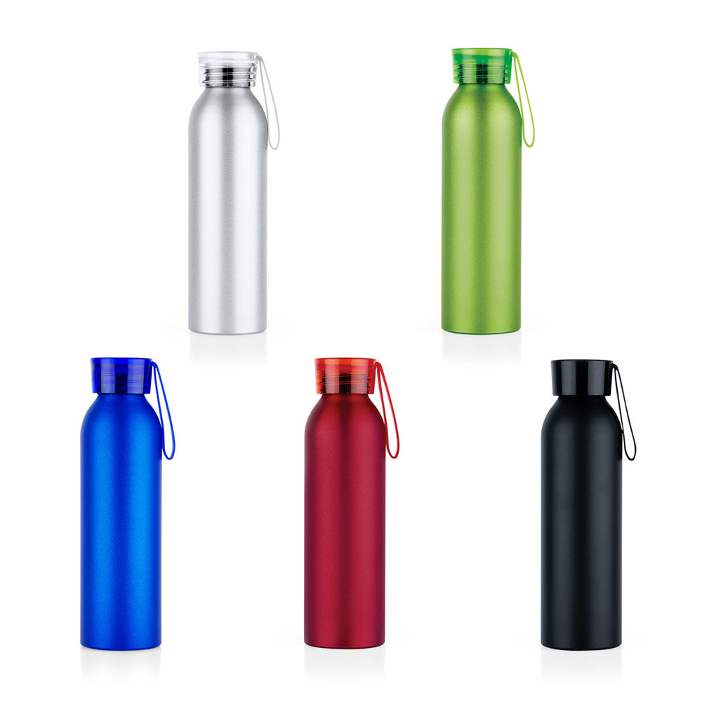 Botella fabricada en aluminio de alta resistencia, equipada con tapa de cierre giratorio y correa en goma para facilitar su transporte. Soporta líquidos en un rango de temperatura recomendado entre 10 °C y 100 °C, lo que la hace adecuada para bebidas frías y calientes. Diseño funcional y duradero, ideal para uso diario en exteriores o interiores. Capacidad: 650 ml / 22 Oz.
