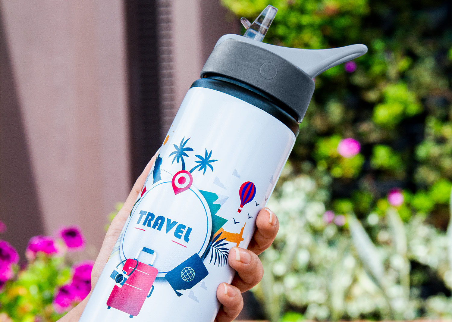 Botella fabricada en aluminio, equipada con tapa plástica de cierre giratorio y pitillo ajustable para facilitar el consumo de líquidos. Incluye manija plástica incorporada que permite un transporte cómodo. Soporta líquidos en un rango de temperatura recomendado entre 10 °C y 100 °C, adecuada para bebidas frías y calientes. Diseño práctico y resistente para uso diario. Capacidad: 730 ml / 25 Oz.