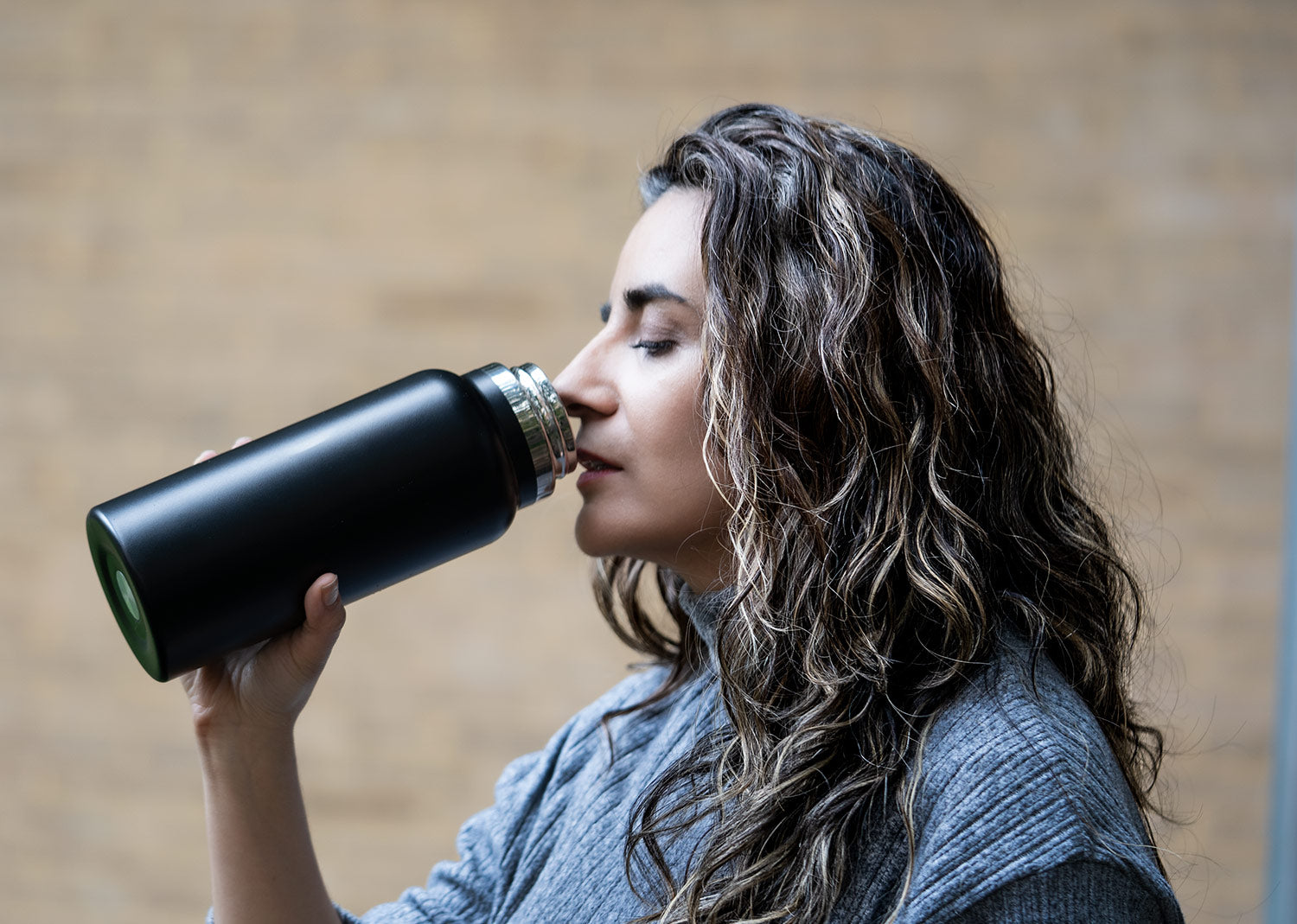 Botella elaborada en acero inoxidable con tapa rosca y asa plástica para facilitar su transporte. Capacidad: 1000 ml / 32 Oz.