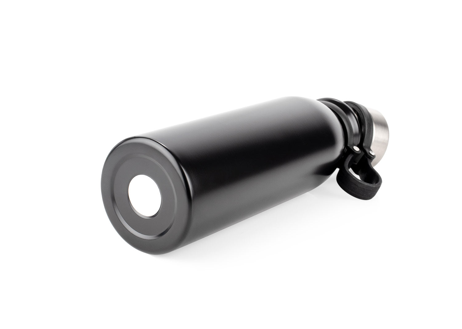 Botella de acero inoxidable con tecnología Nanosilver, diseñada para mantener tus bebidas a la temperatura ideal gracias a su doble pared aislante. Su acabado elegante y resistente la convierte en una opción ideal para el uso diario. Cuenta con tapa de cierre giratorio y un asa integrada atada a la tapa, que facilita su transporte de manera cómoda y segura. Capacidad: 650 ml / 22 Oz.