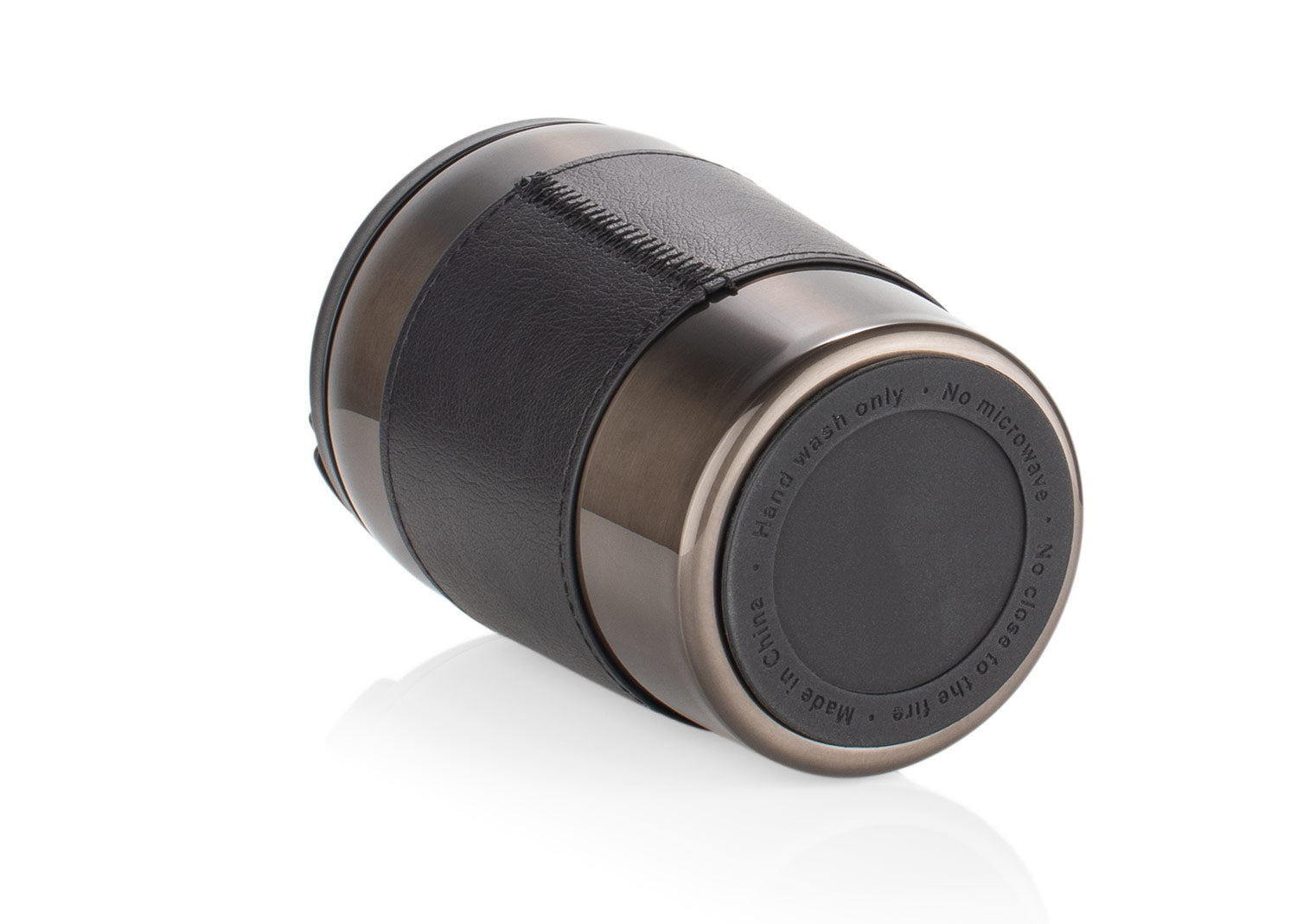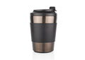 Vaso fabricado en acero inoxidable, con tapa de cierre giratorio y boquilla con seguro a presión que facilita el consumo de bebidas de forma segura. En su interior cuenta con indicador de onzas para mayor precisión. Incluye banda para mejor agarre. No apto para microondas y se recomienda lavar únicamente a mano. Capacidad: 400 ml / 13 Oz.