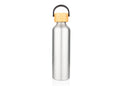 Botella de aluminio con tapa de bambú y asa, ideal para quienes buscan estilo y funcionalidad en un solo producto. Su diseño moderno y resistente la convierte en una excelente opción para el día a día. La tapa con cierre giratorio garantiza un ajuste seguro, mientras que el asa facilita su transporte. Perfecta para mantenerte hidratado con un toque natural y elegante. Capacidad: 650 ml / 22 Oz.
