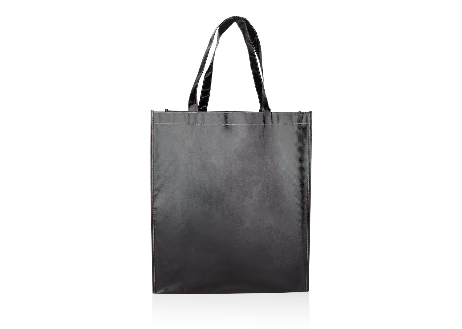 Bolsa tipo tote fabricada en material metalizado brillante. Su acabado reflectivo le da un aspecto moderno y atractivo. Cuenta con asas para facilitar su transporte y un diseño espacioso que permite múltiples usos.
