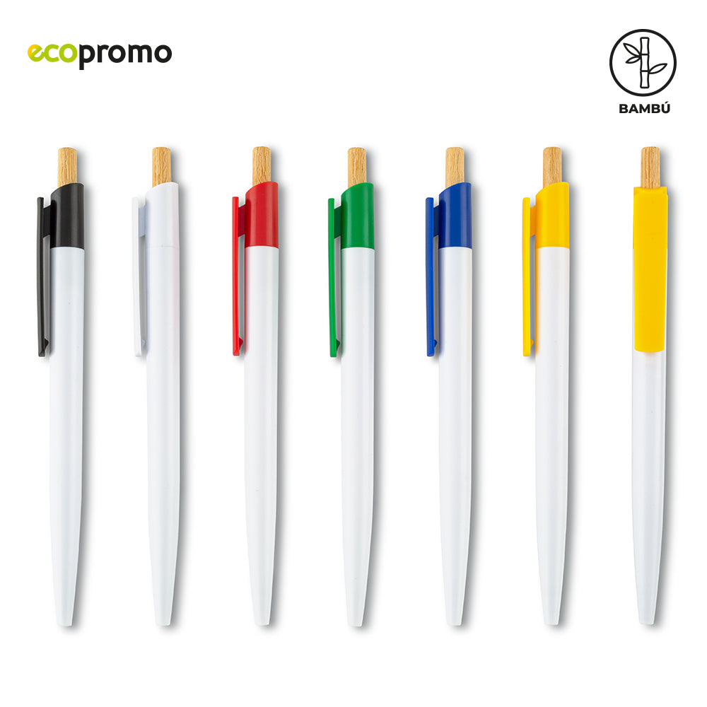Bolígrafo plástico con mecanismo push y partes en bambú.