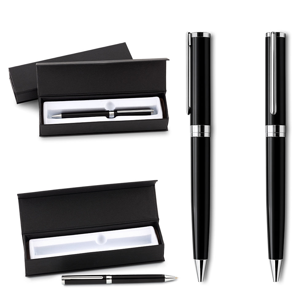 Bolígrafo metálico en estuche de cartón. Mecanismo twist.