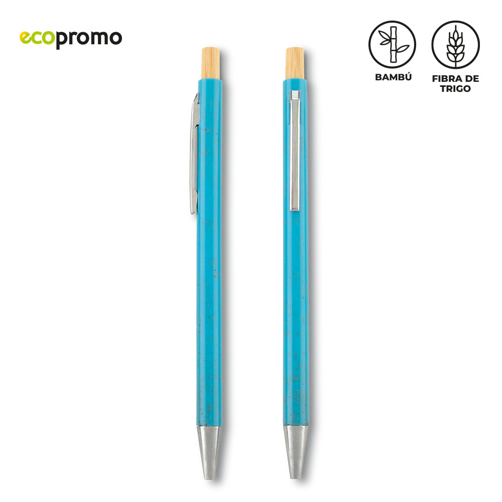 Bolígrafo plástico con mecanismo push, elaborado con fibra de trigo (50% aprox).