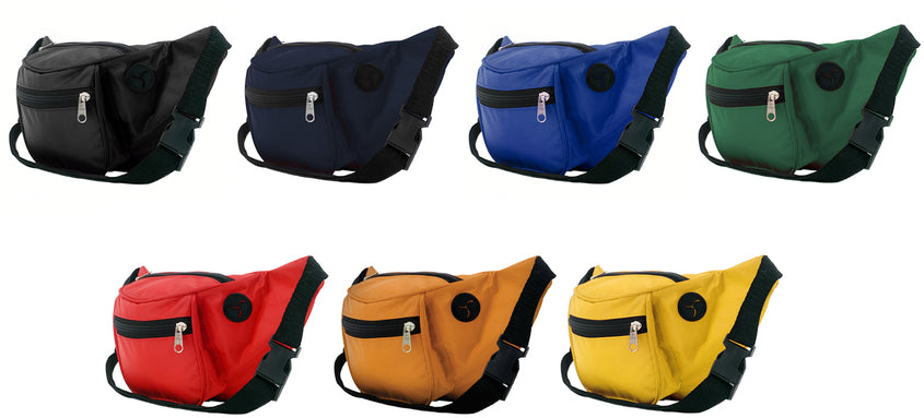 33 x 14,5 cm. Polyester 420D. Cangurera de 2 bolsillos. Salida para audífonos. Correa ajustable con herrajes plásticos. Cierres metálicos.