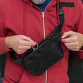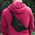 Cangurera con 2 compartimentos con cierre. Amplio bolsillo frontal. Correa ajustable con herrajes plásticos. Cierres y tiradores de cierre plásticos de color negro.