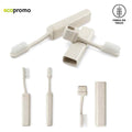 Cepillo de dientes plegable en trigo. Mezcla con material ecológico en fibra de trigo (50%-60% aprox). El porcentaje de material ecológico tiene un promedio de biodegradabilidad de 2-3 años después del fin de su vida útil. Artículo para uso personal, no se admiten Cambios/Devoluciones. Empaque bolsa Individual.