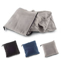 Cobija 100% en poliéster fleece de doble uso. Puede ser usada de dos maneras: de cobija si se abre y de almohada cuando se compacta y se cierra.