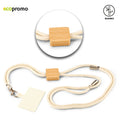 Cinta para portacelular en algodón, con gancho metálico y accesorio en bambú para marca.