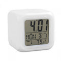 Reloj, calendario, termómetro y alarma. 7 colores de luz cambiables al tacto. De 8 cm. Funciona con 3 pilas AAA, no incluidas.