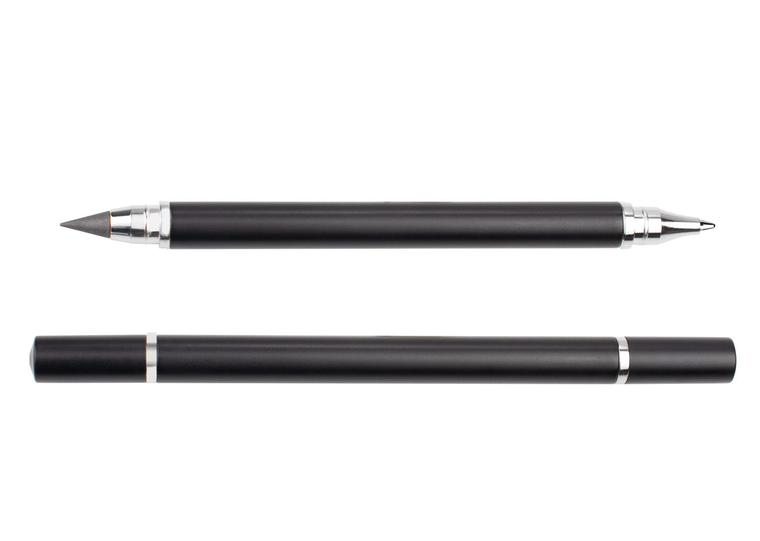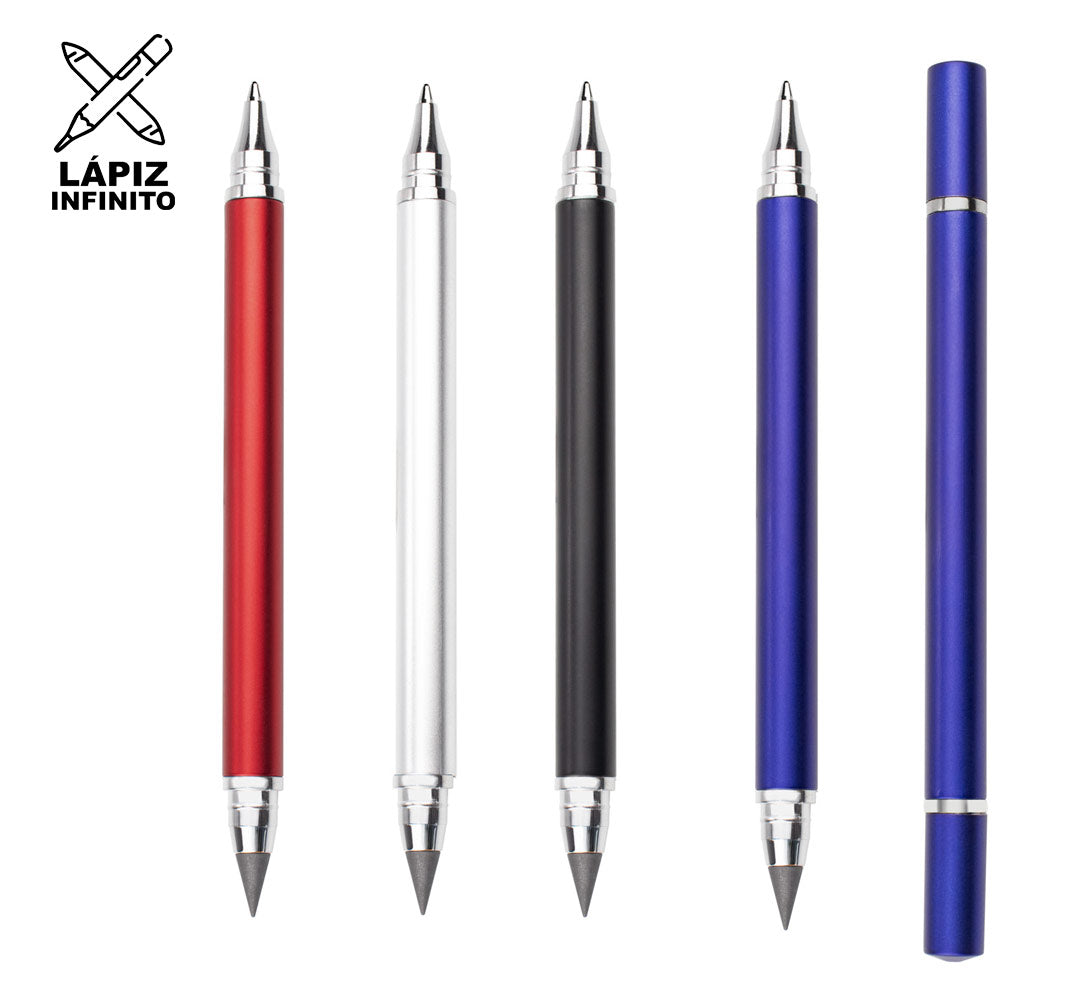 2 en 1. Bolígrafo y lápiz eterno con cuerpo de color metálico y detalles cromados. (Bolígrafo/Esfero)