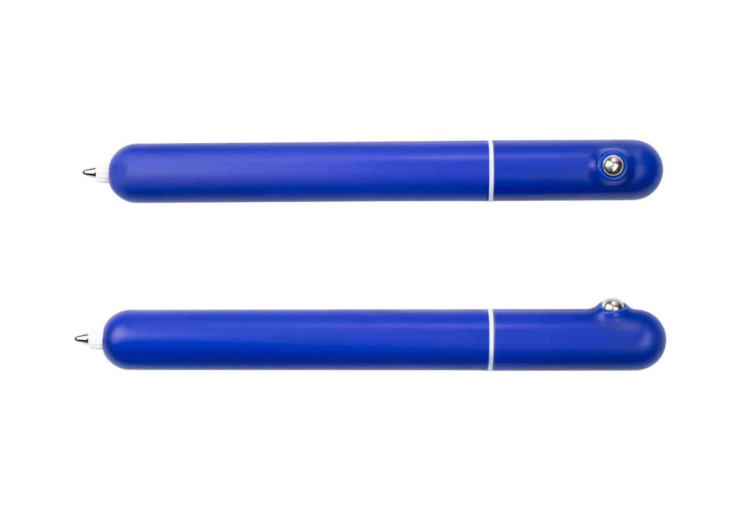 Bolígrafo con barril de color sólido y elegante anillo cromado. En la parte superior, incorpora una esfera metálica con función antiestrés, ideal para mantener las manos ocupadas durante la jornada. El sistema de giro activa la escritura de forma práctica y fluida. Un diseño moderno que combina funcionalidad y un toque interactivo.