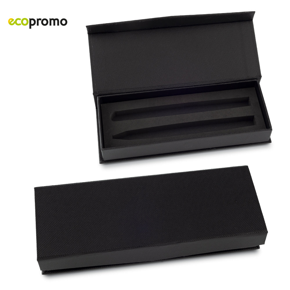 Estuche en cartón con cierre magnético para 2 bolígrafos.