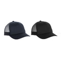 Gorra con visera. 5 paneles. Panel frontal y visera de algodón. Paneles posteriores de malla poliéster del mismo color. Botón forrado. Banda absorbente de poliéster. Cierre con broche plástico ajustable de doble cremallera del mismo color.