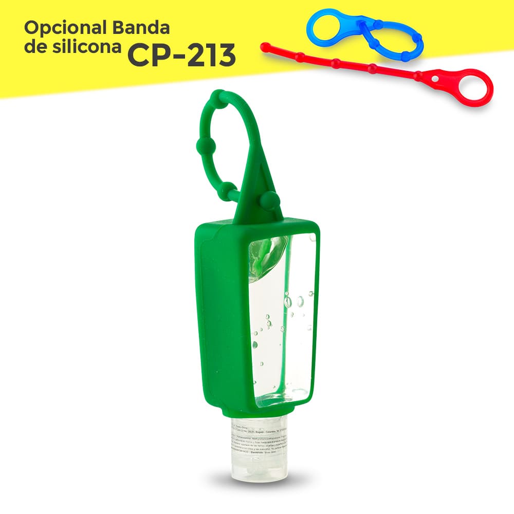 Gel antibacterial de Producción Nacional en frasco plástico (Alcohol 70%). Capacidad 30 ml. Adicional: funda en silicona. Registro Invima.