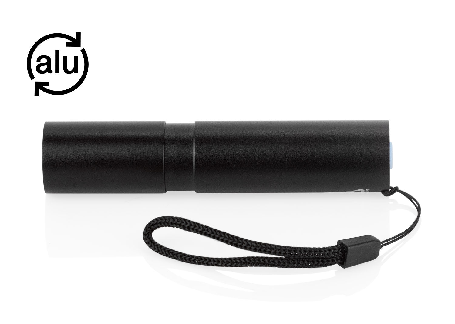 Linterna recargable de alto rendimiento con 110 lúmenes y 3 modos de luz ajustables, que se controlan mediante un botón ubicado junto al puerto de carga. Su diseño incluye función zoom in/out, permitiendo enfocar o ampliar la iluminación deslizando el cuerpo de la linterna. Equipada con batería interna de 400 mAh, cable de carga incluido y práctico cordón para llevarla cómodamente. Ideal para uso diario, actividades al aire libre o emergencias.