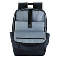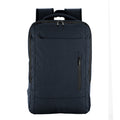 Mochila portanotebook de hasta 16 pulgadas. Cuenta con dos compartimentos: Compartimento posterior con cierre, bolsillo portanotebook de hasta 16 pulgadas con tira de seguridad con cierre de velcro y bolsillo plano con cierre . Compartimento frontal, exterior con bolsillo con cierre horizontal y bolsillo vertical con cierre impermeable, interior con bolsillos organizadores y un bolsilo de red. Asa acolchada y reforzada para mejor traslado. Espalda acolchada con red que permite ventilación. Tira para sujetar la mochila en la manija extensible de un equipaje de mano y bolsillo de seguridad con cierre. Correas acolchadas. Tiradores de cierre metálicos.