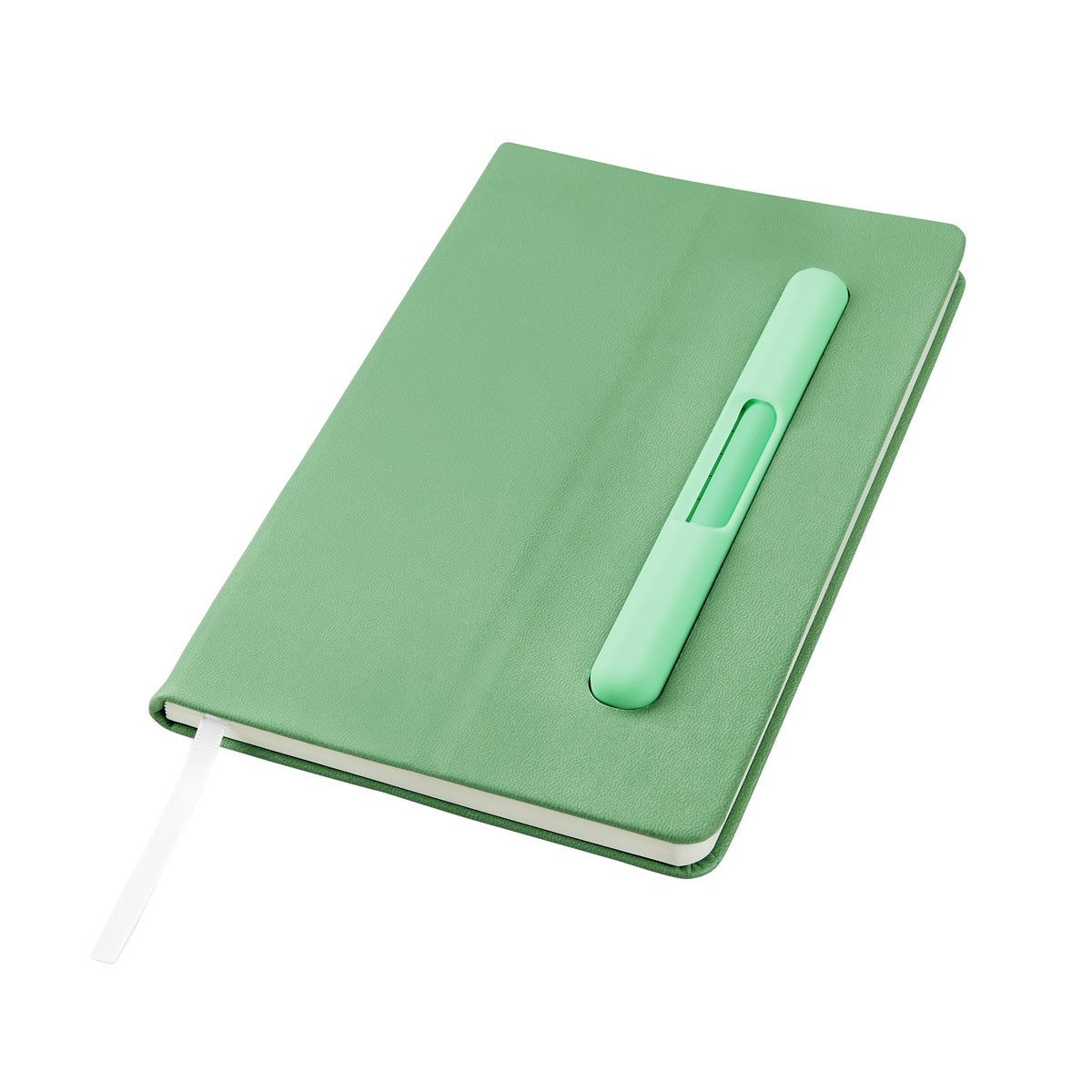 Descripción: Libreta con 96 hojas a raya. Pasta plegable que funciona como base para smartphone. Cubierta rigida de curpiel que incluye un boligrafo desmontable y liston separador de hojas. Con este practico set, estaras siempre listo para plasmar tus ideas en cualquier momento. | |