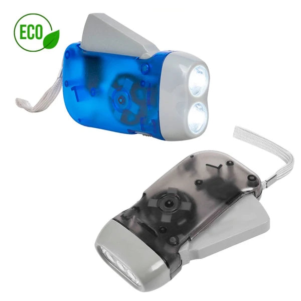 Linterna dínamo con 3 luces LED de alto poder. De 10 X 5 cm.