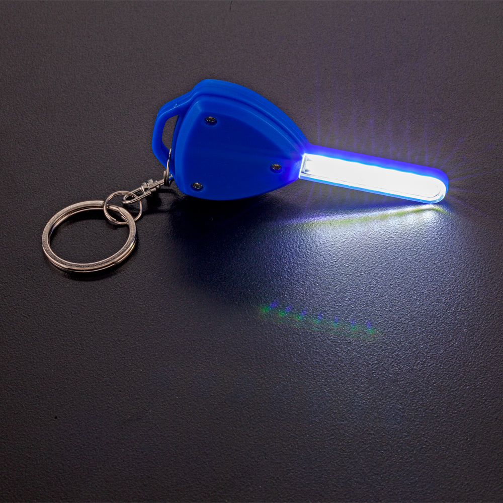 Llavero plástico con 7 LEDS. Con tres modos diferentes de luz (2 fijas con diferente intensidad y una intermitente).