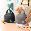Lonchera en oxford con interior de aluminio térmico. Manijas reforzadas. Bolsillo exterior. De 23 x 14 x 20 cm