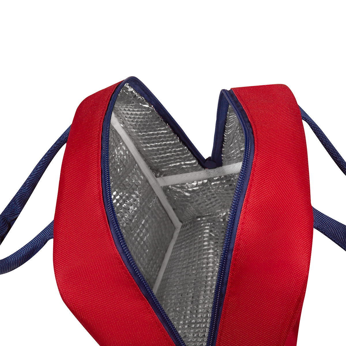 | Descripción: Lonchera con interior metalizado, que le permite mantener alimentos frescos y protegidos, diseno compacto y ligero. Cuenta con una bolsa frontal de rapido acceso, que facilita el almacenamiento de utensilios pequenos o snacks adicionales. Cuenta con asas reforzadas, para sostenerla con mayor comodidad. Capacidad para 6 latas. | |