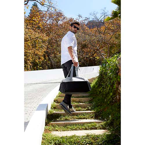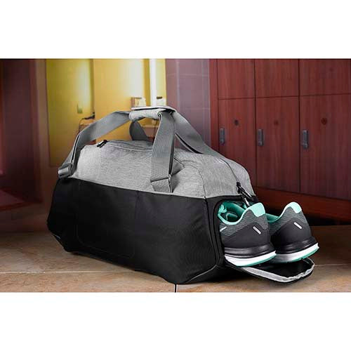 | Descripción: Bolsa principal con cierre, una bolsa interna con velcro y otra con cierre, una bolsa frontal con cierre y dos compartimentos internos, compartimento lateral para zapatos . Asas de mano ajustables. | |