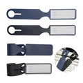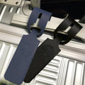 Elegante marca maletas en cuerina. Reverso en papel para información del equipaje. De 25.5 x 3.8 cm.