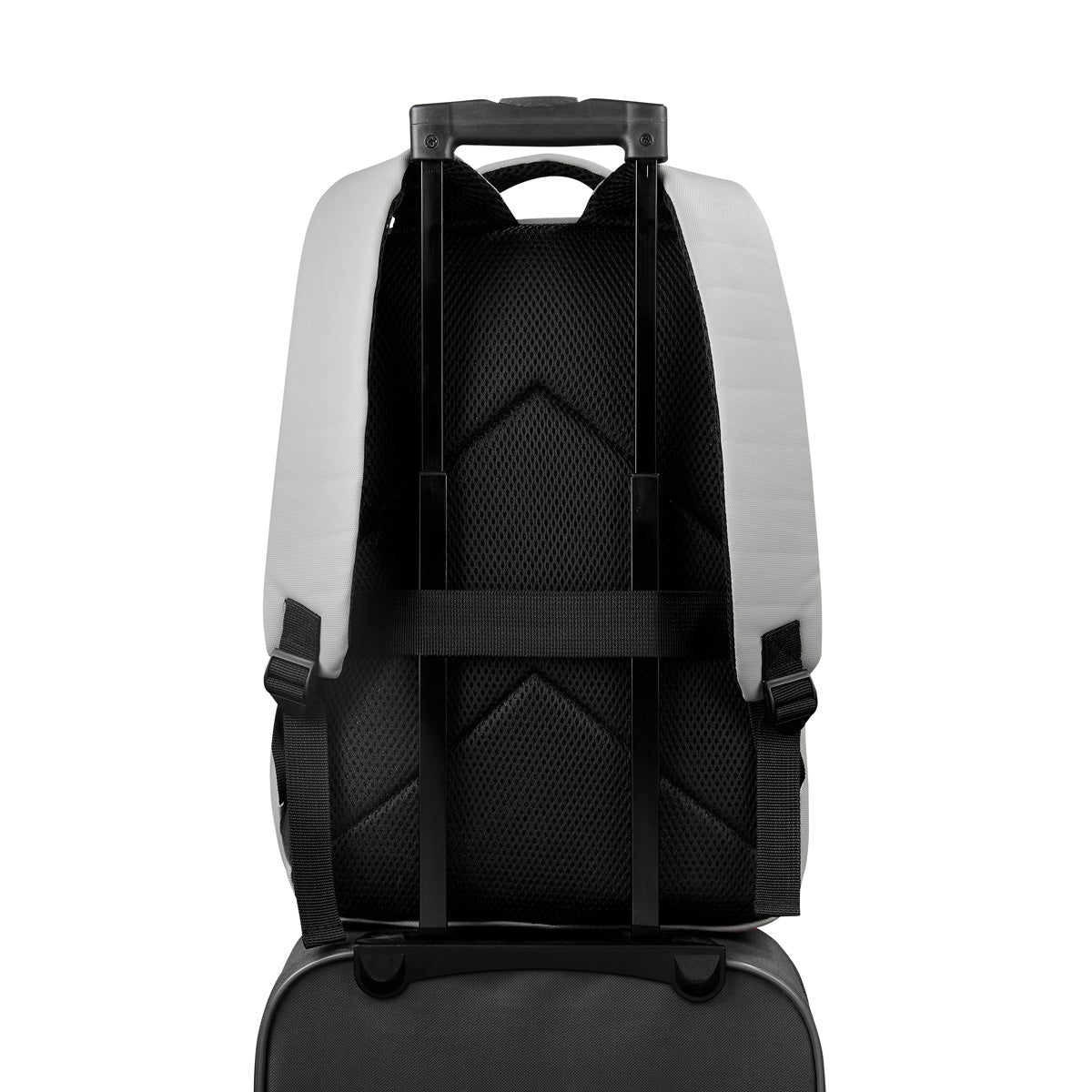 | Descripción: Bolsa principal con cierre y compartimento interior para laptop de hasta 15", en su interior dispone de un organizador para accesorios para objetos pequenos. Incluye bolsillo frontal con cierre. En la parte posterior cuenta con tirantes para hombro ajustables, respaldo acolchado y banda que facilita su transporte en trolley. | |