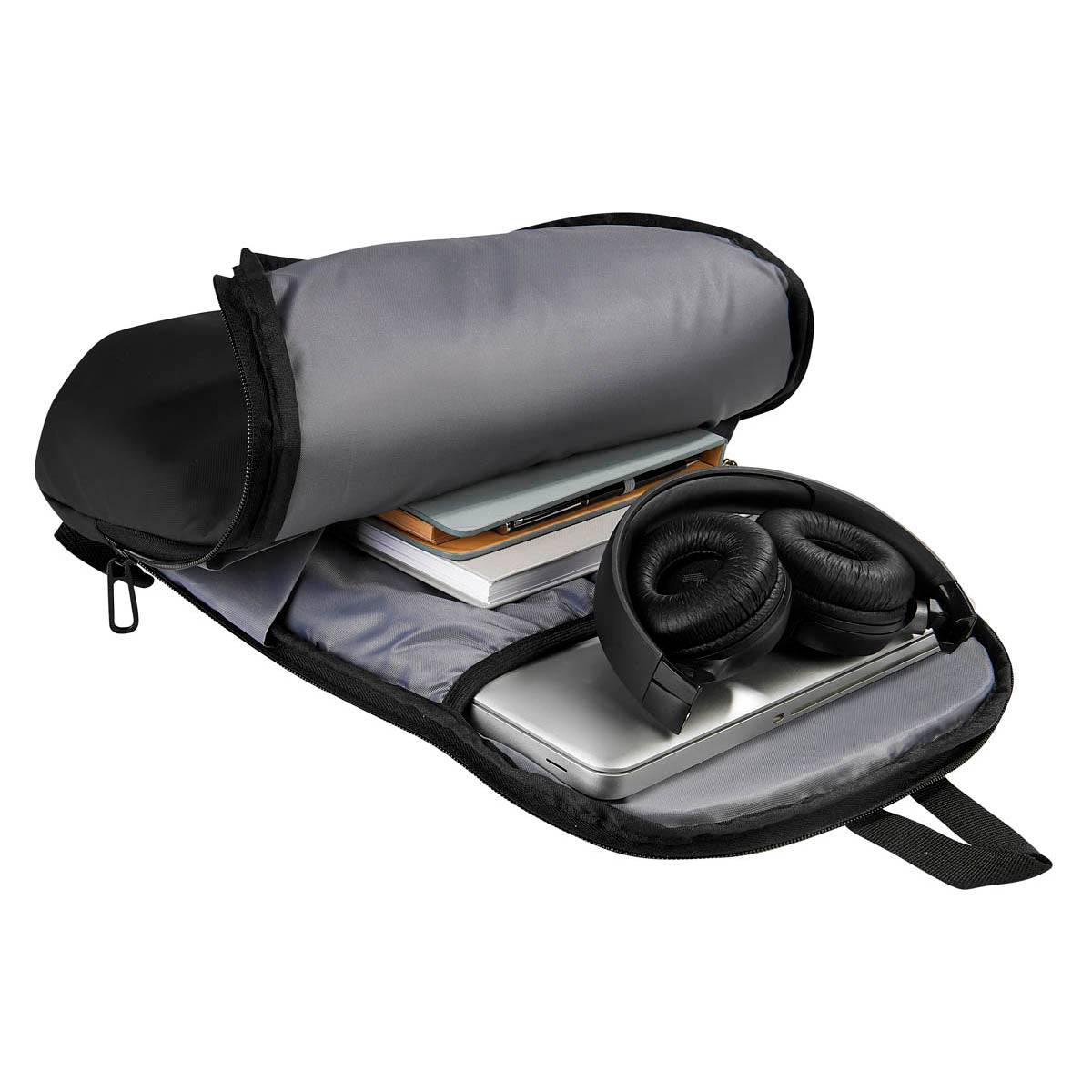 | Descripción: Bolsa principal con cierre y compartimento interior para laptop de hasta 15". Incluye bolsillo frontal superior y bolsillo frontal con cierre cruzado. En la parte posterior cuenta con tirantes para hombro ajustables, respaldo acolchado y banda que facilita su transporte en trolley. | |