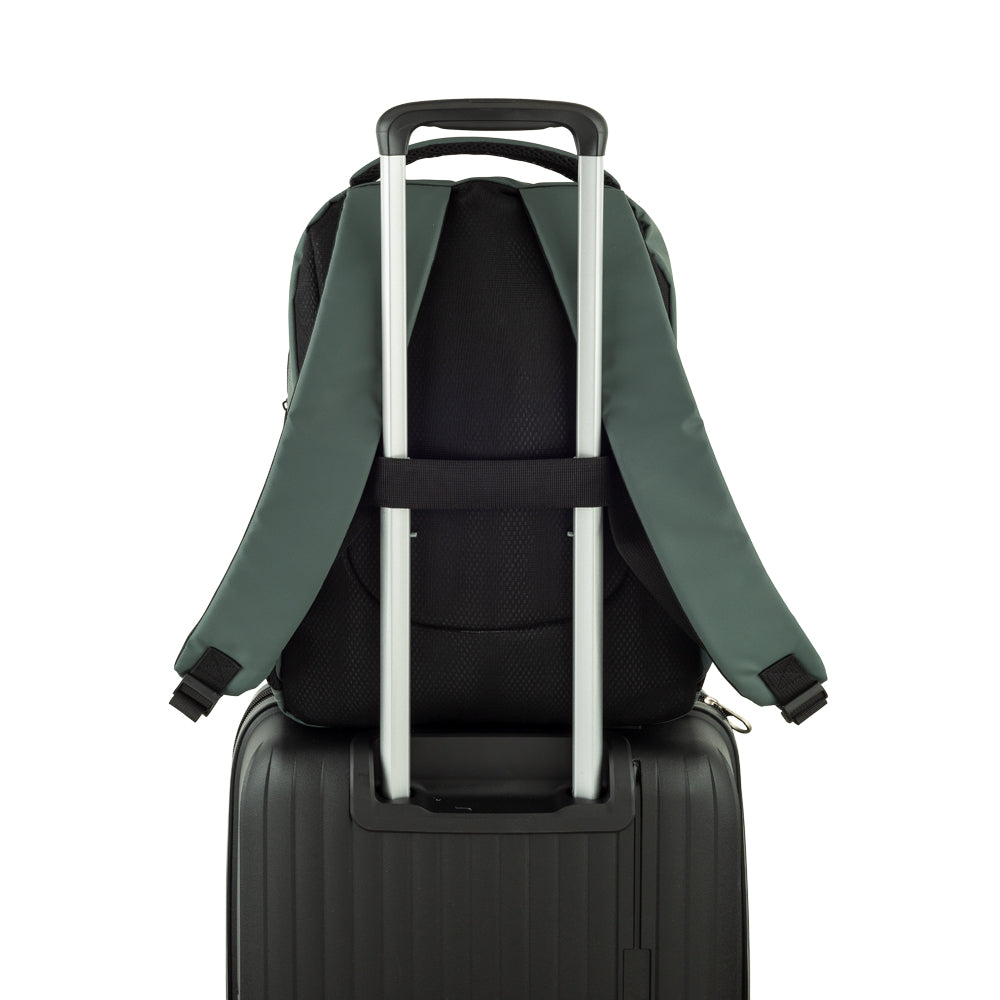 Apto para portátil de 15”. Banda posterior para enganchar en trolley. Espaldar acolchado.